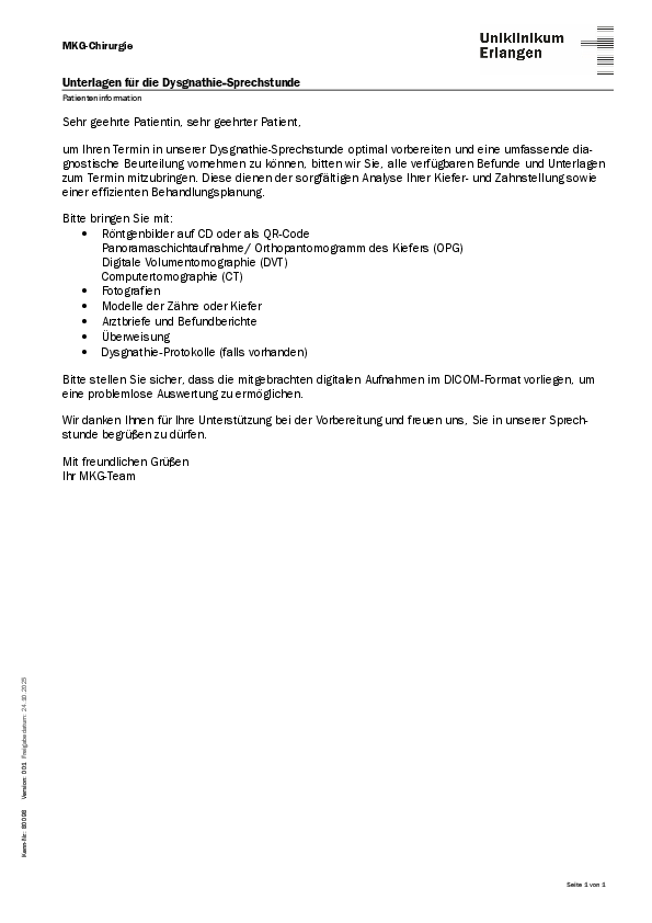 MKG-Chirurgie Unterlagen für die Dysgnathie‑Sprechstunde Patienteninformation Sehr geehrte Patientin, sehr geehrter Patient, um Ihren Termin in unserer Dysgnathie-Sprechstunde optimal vorbereiten…